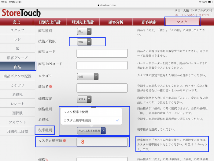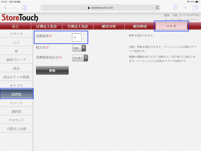 StoreTouchでの消費税率の変更方法をお知らせ致します。
